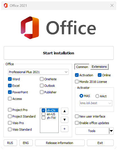 微软 Microsoft Office Professional Plus 2021 办公套件,由俄罗斯大神 @KpoJIuK 基于微软官方