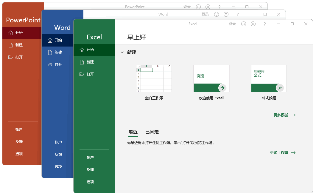 默认安装 Word、Excel、PowerPoint 三大组件,其他组件可选安装,