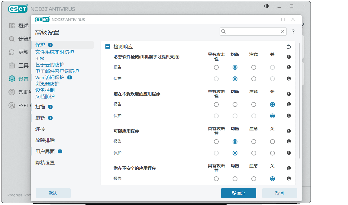 技术优势:采用ThreatSense启发式分析技术,通过行为监控识别未知威胁,减少对病毒库的依赖。