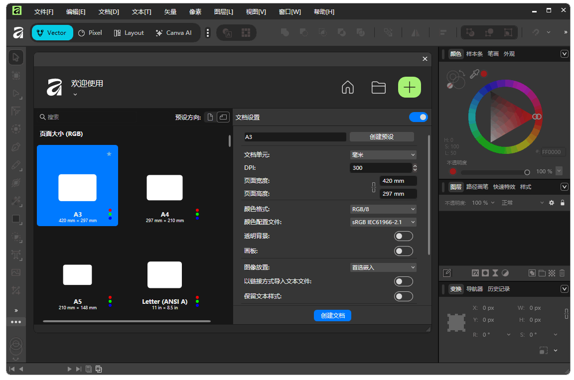 整合了原Affinity Designer(矢量图形)、Affinity Photo(图像编辑)和Affinity Publisher(页面布局)
